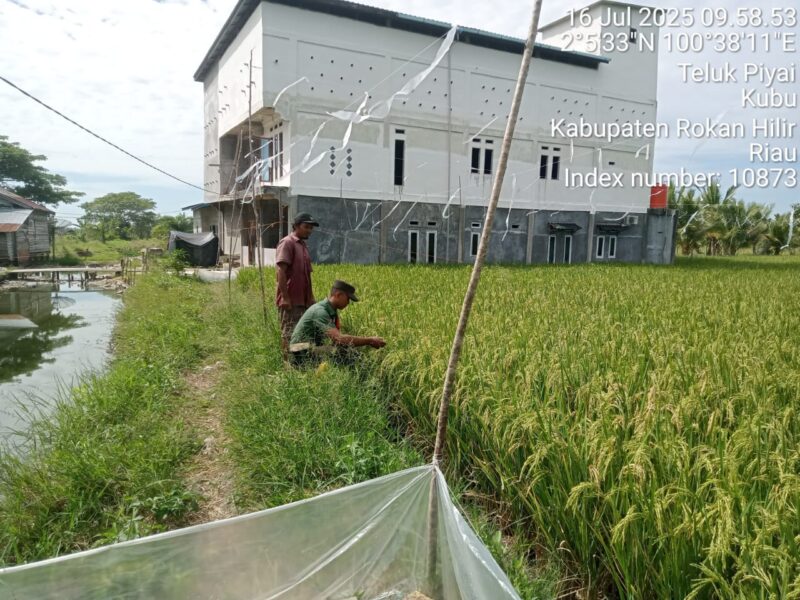 Sebagai upaya meningkatkan tarap ekonomi bagi Warga masyarakat di Desa Binaan Koramil 04/Kubu melalui Babinsa Kopda Frengki Suwito memberikan bantuan Pemeliharaan atau perawatan tanaman padi ip 200 kepada pak Nanang Warga RT 02/ RW 04 Kepenghuluan Teluk Piyai Kecamatan Kubu Kabupaten Rokan Hilir pada Kamis 16/7-2025.