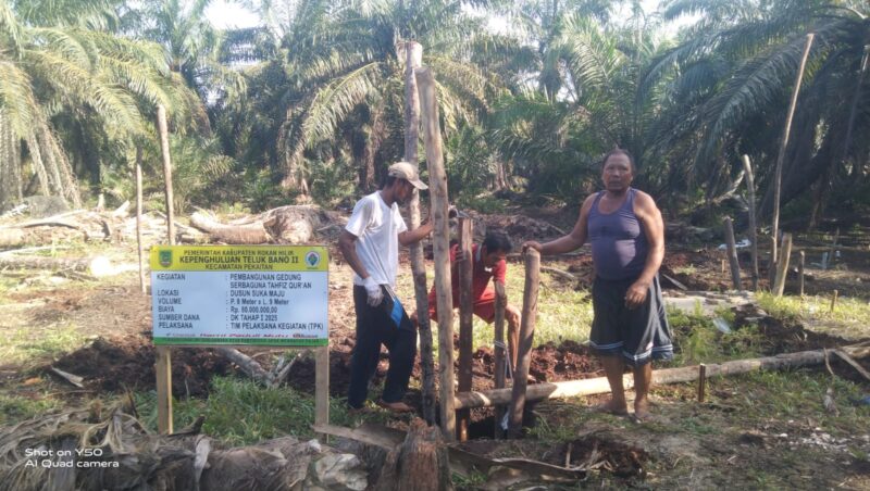 RohilRiau21net, ——– Kepenghuluan Teluk Bano Kecamatan Pekaitan saat ini tengah melaksanakan kegiatan Pembangunan gedung Serba Guna Tahfiz Qur’an.