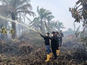 RohilRiau21net,—– Datuk Penghulu Rantau Panjang kiri Kecamatan Kubu Babussalam Kabupaten Rokan Hilir Jefrianto bersama Dansat Brimob Polda Riau Kombes Pol Ketut Gede Adi Wibawa S.I.K memimpin langsung upaya pemadaman titik api yang disebabkan oleh kebakaran hutan dan lahan (Karhutla) di Dusun Mekar Jaya Kep.Rantau Panjang Kiri Kec.Kubu Babussalam Kab.Rohil Minggu 20/07/2025