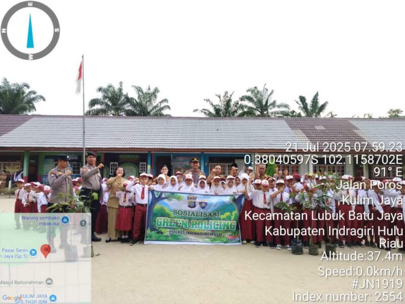 Pekanbaru — Dalam rangka mendekatkan institusi Kepolisian kepada generasi muda sekaligus menanamkan nilai-nilai kepedulian terhadap lingkungan, Kapolsek Lubuk Batu Jaya (LBJ) Ipda Daniel Okto S., S.E., M.H., memimpin upacara bendera sebagai inspektur upacara (irup) di SDN 009 Desa Kulim Jaya, Kecamatan LBJ, Kabupaten Indragiri Hulu, Senin (21/7/2025) pagi.