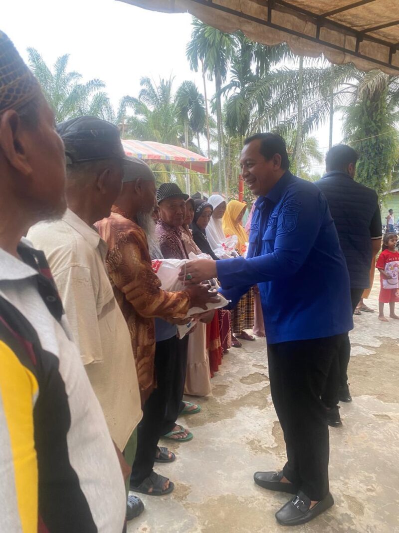 Amansyah ketua DPD PAN Rohil saat membagikan sembako kepada masyarakat