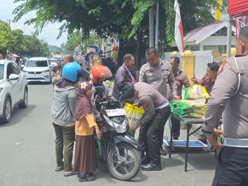 Selain itu, tampak di lokasi kegiatan, personel Ditlantas Polda Riau juga menyapa para pengendara dan memberikan pesan edukasi terkait tata tertib berlalu lintas. Kehadiran Polantas dalam kegiatan ini sekaligus menghadirkan pendekatan humanis, tidak hanya menyalurkan bahan pokok, tetapi juga mengingatkan pentingnya keselamatan berkendara.