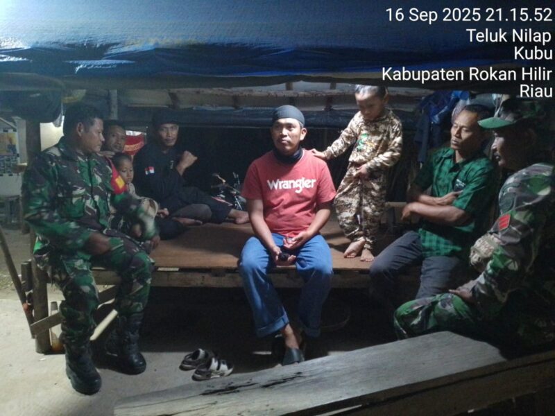RohilRiau21Net,-‐—- Mengantisifasi gangguan Kamtibmas di wilayah Koramil 04/Kubu Kodim 0321 Rohil Dpp Serda Heri Susanto bersama warga dan Ormas Grib Jaya Kecamatan Kubu Babussalam menggelar kegiatan Siskamling pada Selasa Malam 16/9-2025 dimulai sekitar pukul 11:30 Wib.