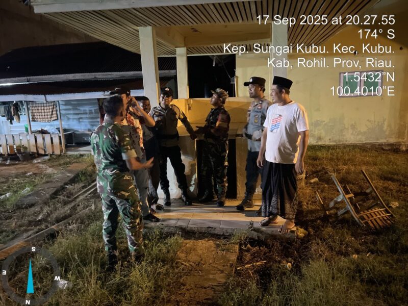 RohilRiau21,—- Mengantisifasi terjadinya Kamtibmas di Wilayah Binaan Koramil 04/Kubu, Personil Koramil Dpp Sertu Martos bersama Personil Polsek Kubu dan anggota ormas LMB melaksanakan kegiatan Patrori siskamling yang dimulai sekitar pukul 11:30 Wib.