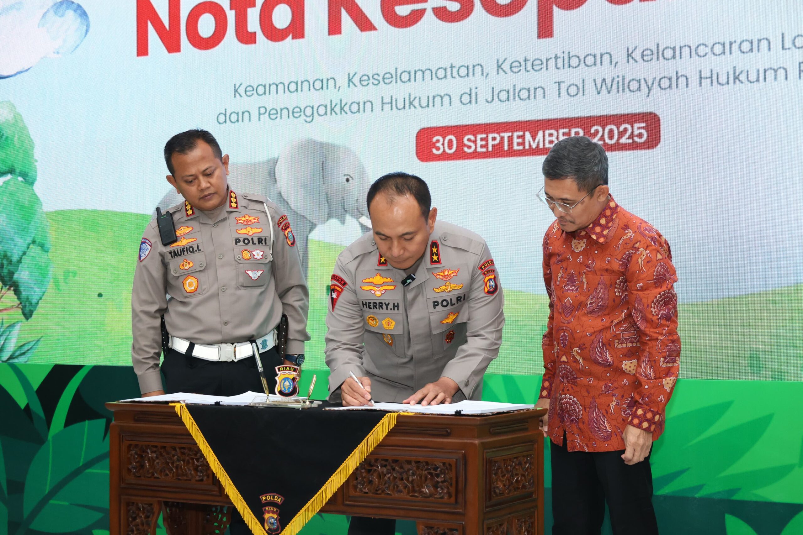 Irjen Herry menambahkan, MoU ini diharapkan menjadi langkah nyata dalam memberikan rasa aman dan nyaman bagi seluruh pengguna jalan tol, sekaligus memperkuat sinergi antara kepolisian dan pengelola jalan tol dalam menciptakan budaya tertib lalu lintas.