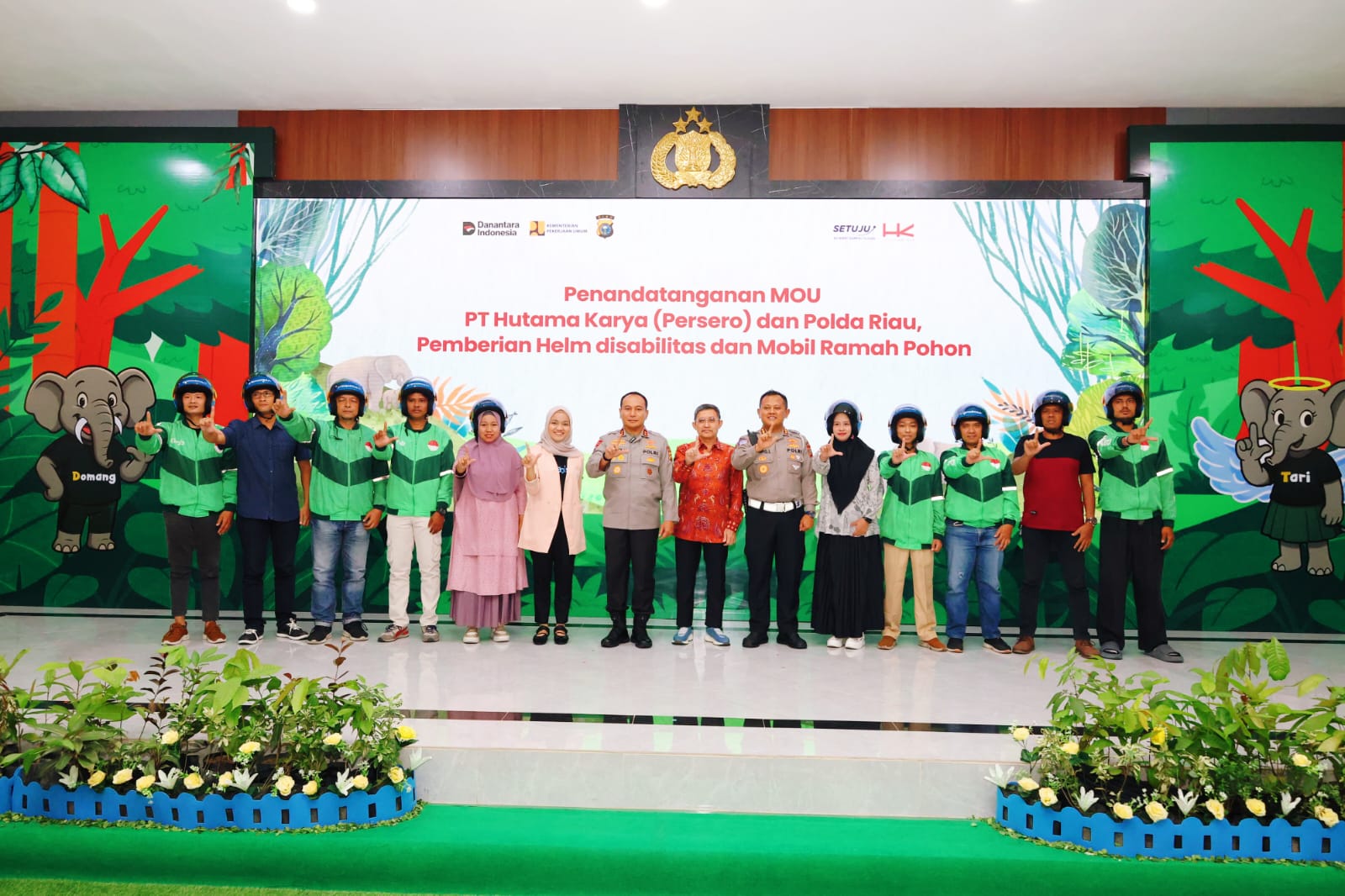 Dalam kesempatan ini, PT Hutama Karya dan Polda Riau menyerahkan helm khusus disabilitas serta Mobil Ramah Pohon, sekaligus memberikan pengarahan tentang pentingnya keselamatan dan ketertiban berkendara.