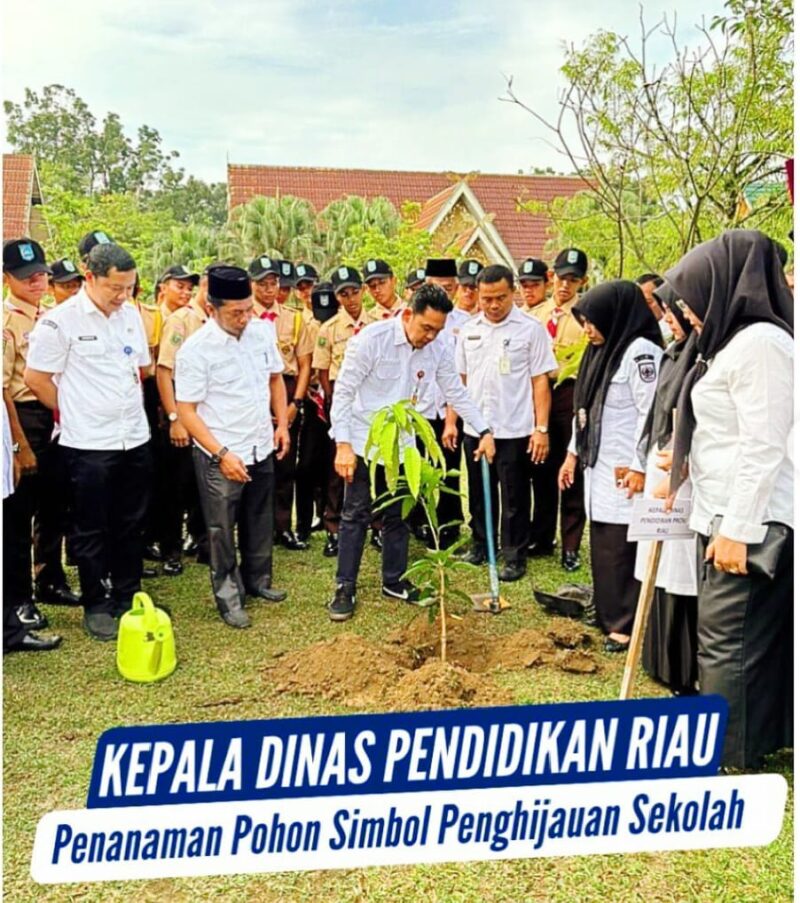Kegiatan penanaman pohon ini dihadiri oleh Sekretaris Dinas Pendidikan Provinsi Riau, Arden Simeru dan Kabid SMA, Nasrol beserta jajaran pejabat lainnya.