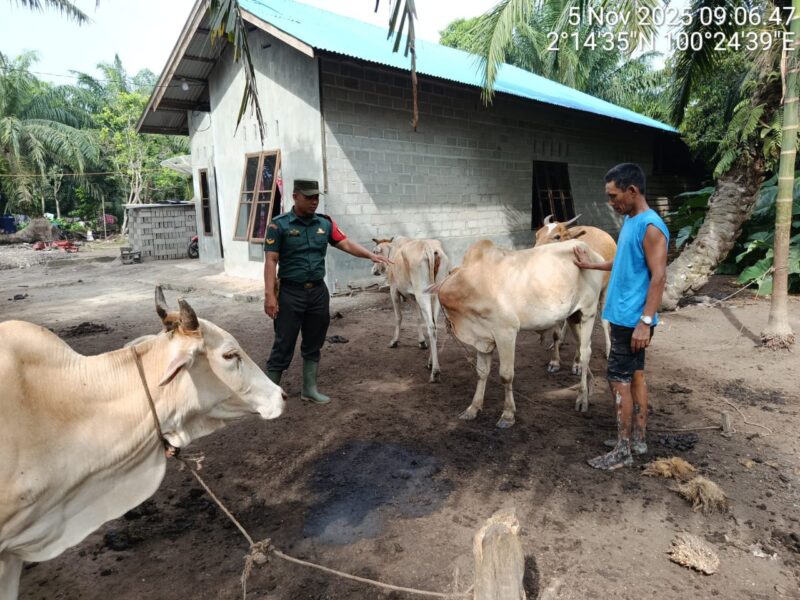 Rohil Riau21Net,——– Penyebaran dan Penularan penyakit Mulut maupun Kuku pada ternak di Wilayah Koramil 04/Kubu terus mendapat perhatian serius sebab Penyakit jenis ini dapat mempengharuhi Perkembangan hewan bahkan dapat menimbulkan kematian.