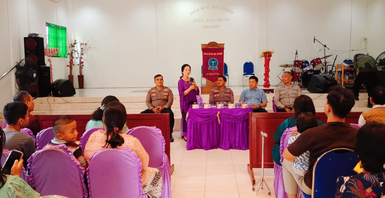 Kegiatan yang dimulai sekitar pukul 09.00 WIB ini dihadiri oleh sekitar 25 jemaat GBIS Kasih Karunia bersama perwakilan personel dari Polda Riau dan Polresta Pekanbaru.
