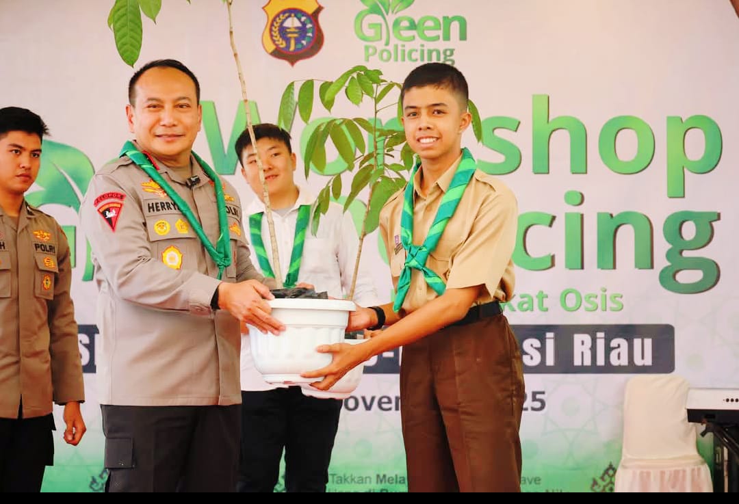 Pekanbaru, riau21.net – Workshop Green Policing yang diselenggarakan Kepolisian Daerah (Polda) Riau resmi dibuka. Kapolda Riau Irjen Pol Herry Heryawan yang membuka kegiatan ini mengajak ratusan ketua Organisasi Siswa (OSIS) SMA sederajat se-Provinsi Riau untuk menghijaukan Bumi Lancang Kuning. Di Alamayang Pekanbaru pada hari Rabu (12/11/2025).