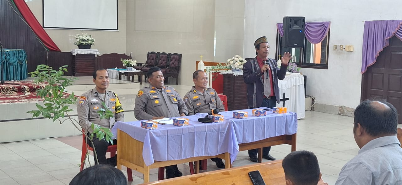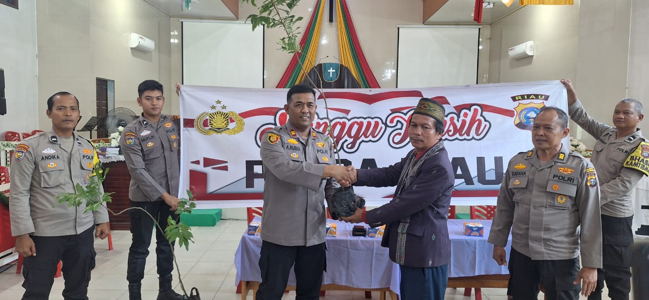 Pekanbaru, riau21.net – Polsek Payung Sekaki bersama Polda Riau melaksanakan kegiatan Minggu Kasih sebagai wadah menampung aspirasi, keluhan, dan masukan langsung dari masyarakat Kecamatan Payung Sekaki. Kegiatan berlangsung di Gereja Kristen Protestan Angkola (GKPA) Jalan Durian, Gg. Angkola No. 44, Kelurahan Labuhbaru Timur, Payung Sekaki, Pekanbaru, pada hari Minggu pagi (16/11/2025).Kegiatan dipimpin langsung oleh Kapolsek Payung Sekaki IPTU Awi Ruben, SH., MH., bersama tim Minggu Kasih dari Dit Binmas Polda Riau dan Bhabinkamtibmas Polresta Pekanbaru. Acara dihadiri Pendeta GKPA Pdt. AB Marpaung, M.Min., M.Th., jajaran pengurus gereja, serta sekitar 100 jemaat.
