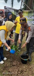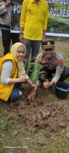 DR Karmila Sari bersama Kapolsek Kubu didampingi Camat Kuba saat penanam pohon Penghijauan dilingkungan Sekolah.