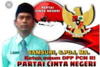 Jakarta | Sosok Pendiri sekaligus Ketua Umum Partai Cinta Negeri (Samsuri, S.Pd.I., M.A.) dideklarasikan sebagai Calon Presiden Republik Indonesia untuk Pemilihan Presiden (Pilpres) 2029…